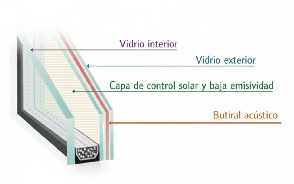El típico “doble cristal normal” suele quedarse corto en viviendas con mucho sol. No es una cuestión de estética, sino de rendimiento y durabilidad.